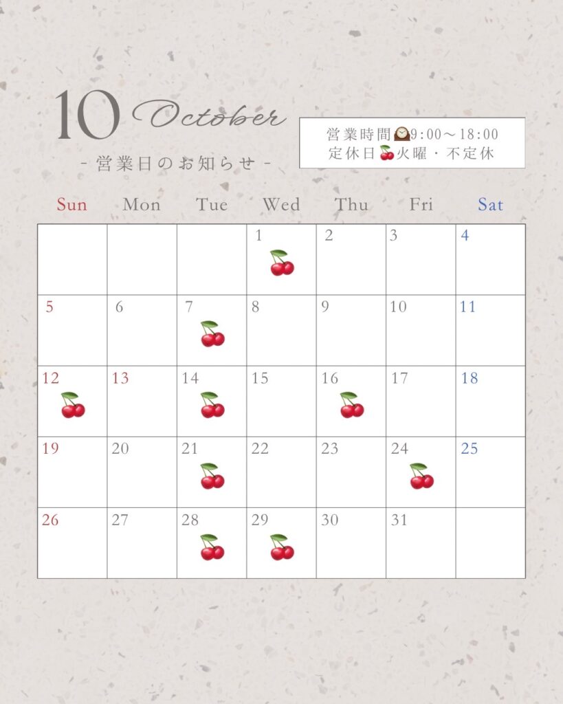 10月、11月、12月の営業日です🗓 ̖́-