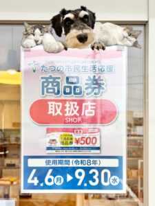 4/6(月)~9/30(水)までの期間『 たつの市民生活応援商品券』がお使いいただけます🙋♀️🩵🎫 トリミングはもちろん!商品や一時お預かりのお支払いにもお使いいただけます🐶🐱🎶 是非ちぇり […]